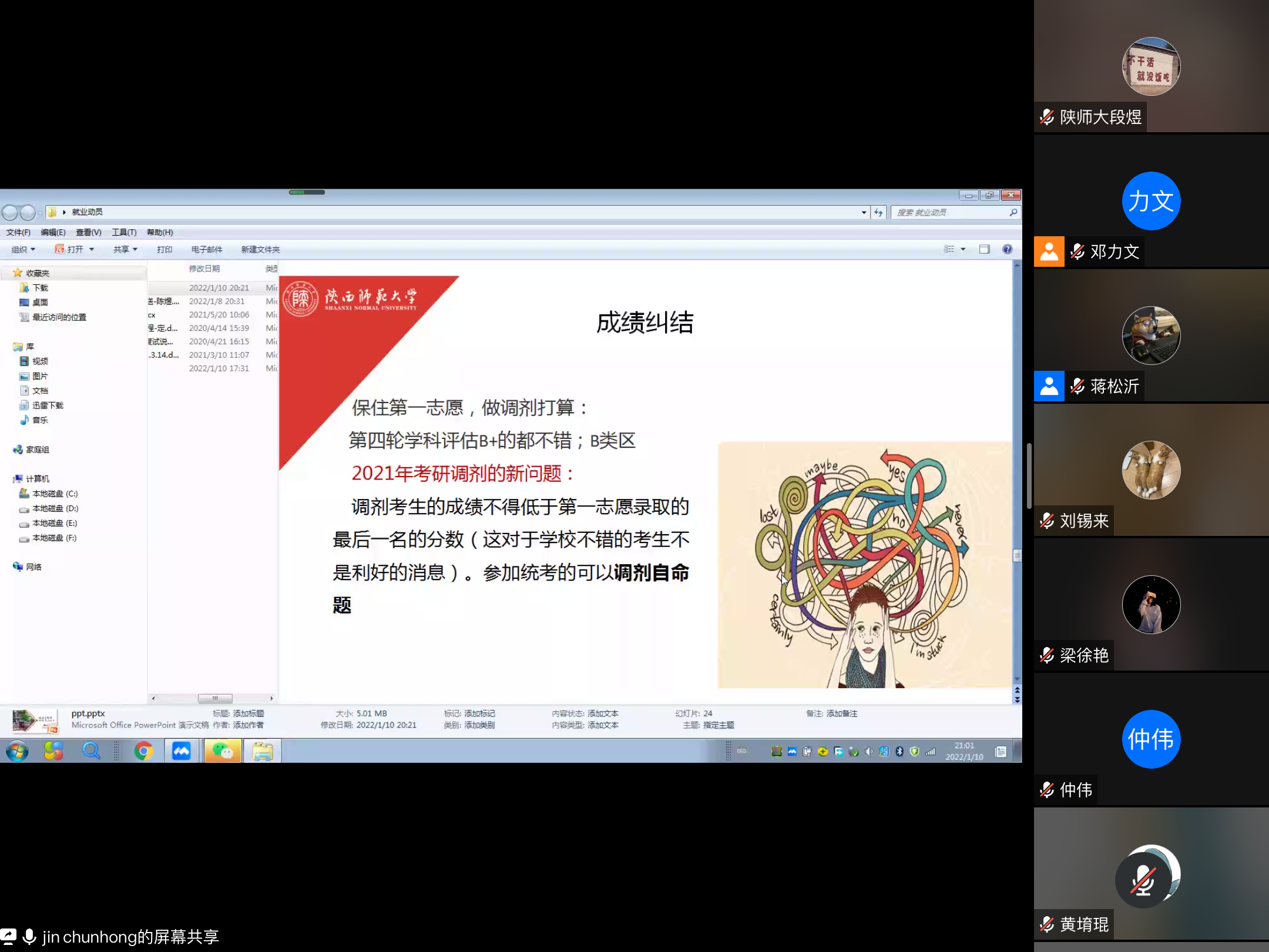 2022年1月10日晚,William希尔官网入口2018级本科生“就业动员”大会在线上举行。本次会议由公司党委副书记靳春泓主讲,公司党委书记郑鹏、经理曾京辉、副经理王强、刘治科老师及2018级全体本科生参加了本次会议。