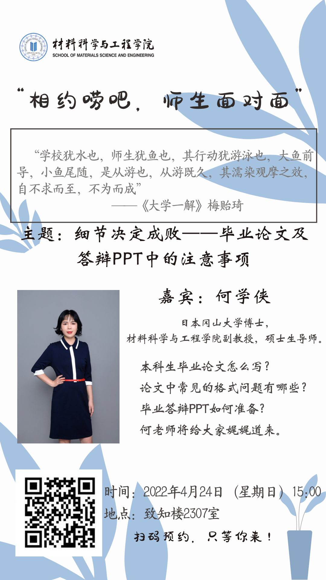 日下午开展第一期“相约唠吧,师生面对面”活动。具体通知如下: