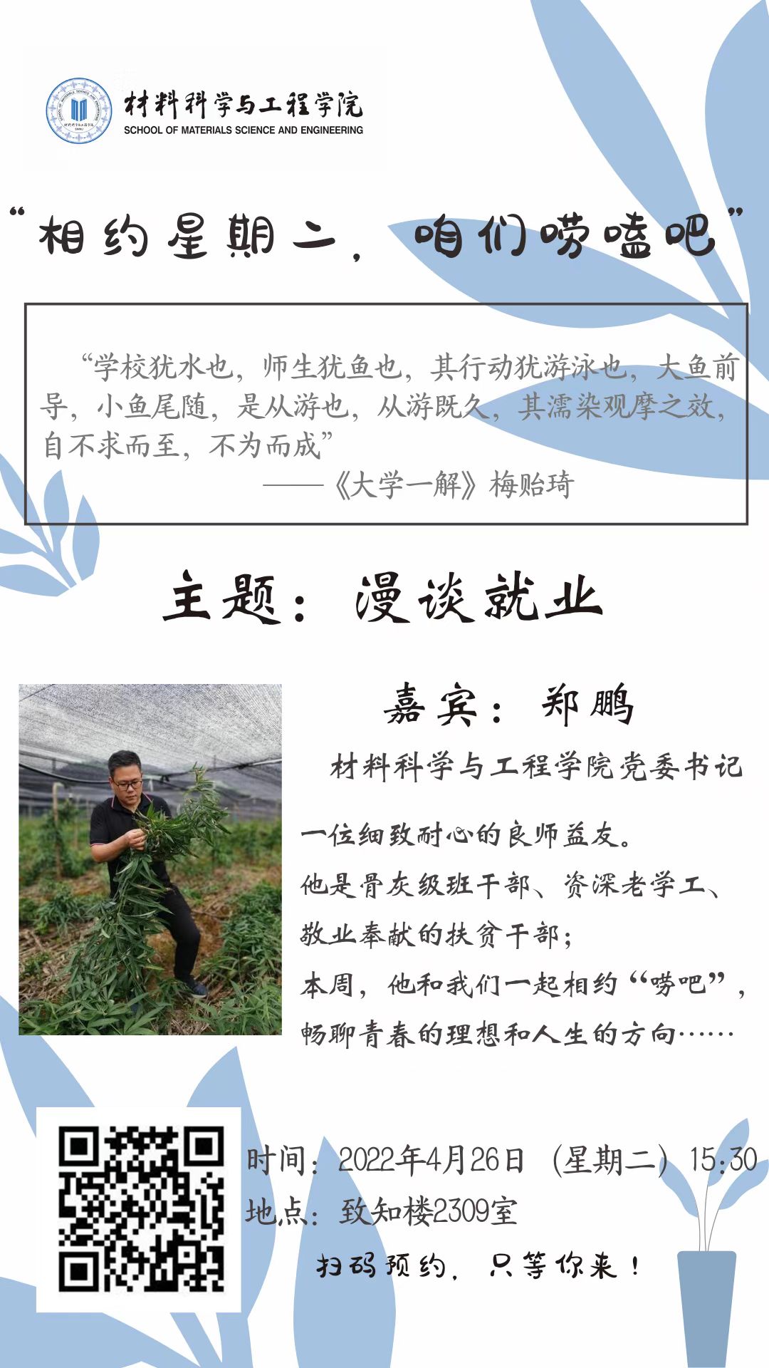日下午开展第一期“相约星期二,咱们唠嗑吧”活动。具体通知如下:
