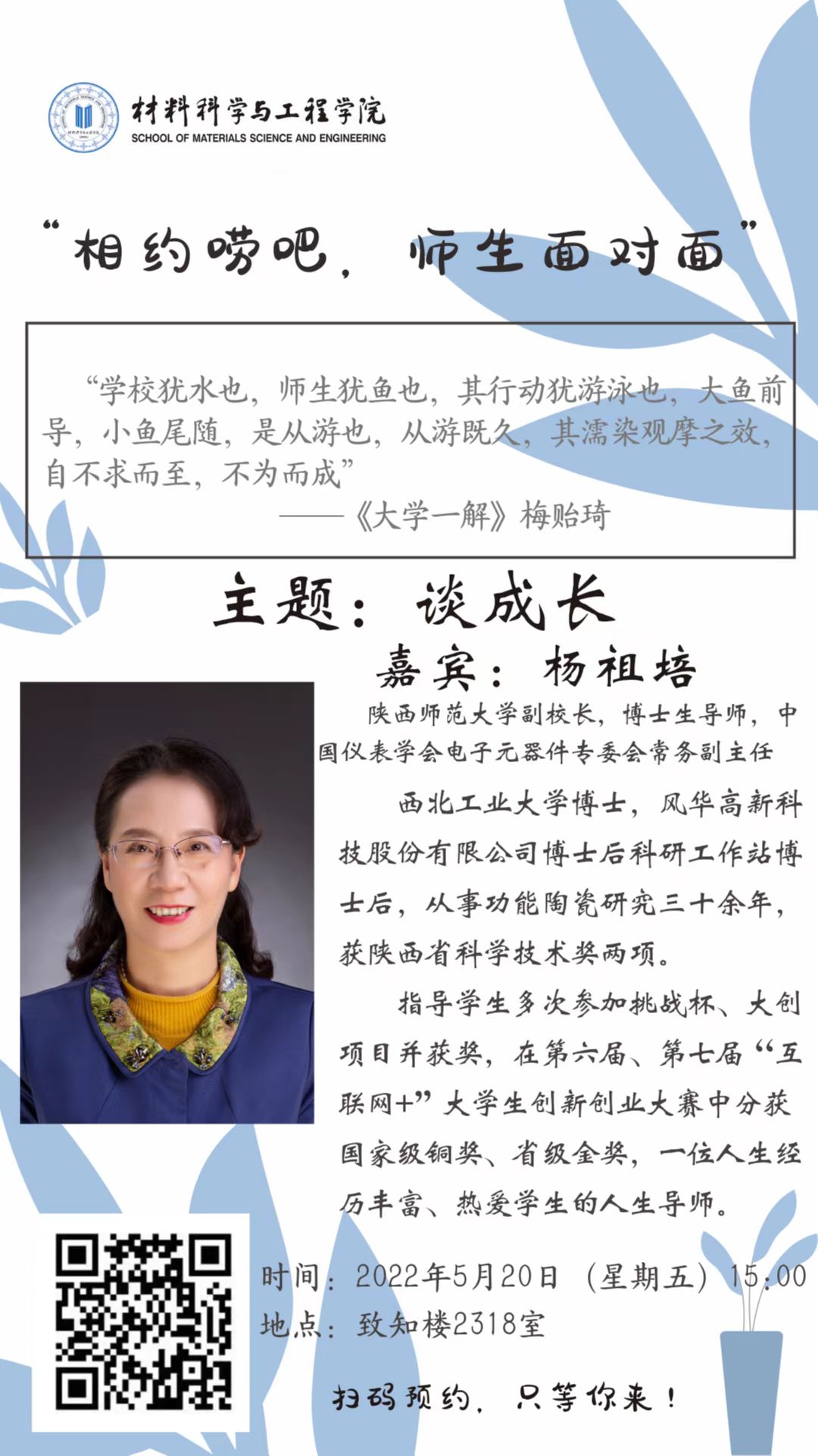 日下午开展第五期“相约唠吧,师生面对面”活动。具体通知如下:
