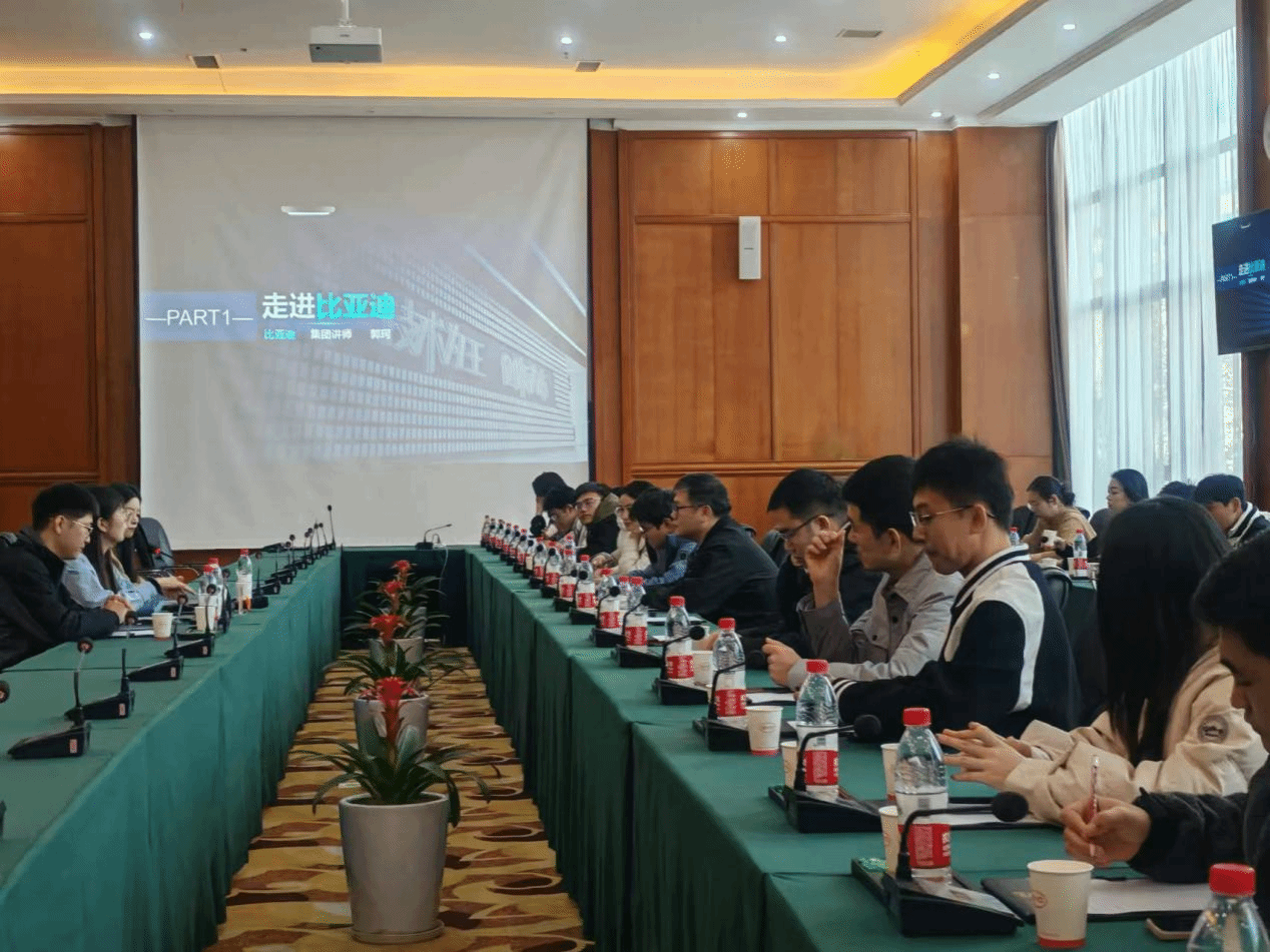 参观行程结束后,校企双方随即举行座谈交流。公司党委书记郑鹏在会上强调,本次活动核心目的在于增进师生对企业的直观了解,尤其是比亚迪深厚的企业文化底蕴与迅猛的发展态势,为人才培养提供现实参照。他表示,希望以此为契机,未来在毕业生就业、产学研合作等多领域与比亚迪携手共进,深挖合作潜能,实现互利共赢。厂方代表对公司一行来访致以诚挚欢迎,并积极回应,明确表达期待能与公司精准对接适配项目,打通优秀人才输送通道,助力毕业生高质量就业,达成企业与公司的双赢。针对同学们现场提出的专业对口岗位疑惑,厂方详细解答,点明汽车电池储能、防腐高分子材料等关键领域对相关专业人才有着急切需求,热忱鼓励同学们投身新能源汽车产业浪潮,贡献青春才智。