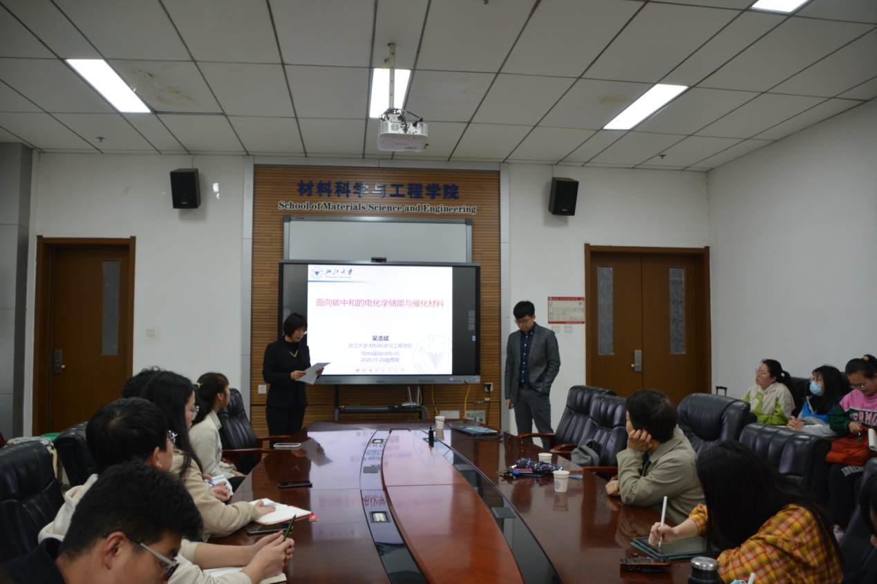 2021年4月23日下午,应公司邀请,浙江大学William希尔官网入口博士生导师吴浩斌研究员在致知楼2313会议室为广大师生带来了“面向碳中和的电化学储能和催化材料”的学术报告。公司陈沛教授、化学化工公司李淑妮教授及部分研究生参加了本次报告会,报告会由陈沛教授主持。