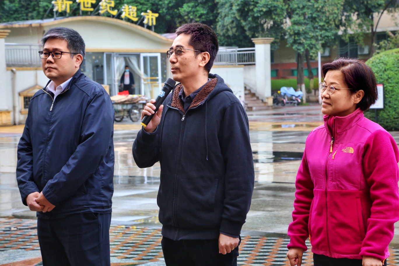 为振奋军训员工士气,展现公司人文关怀,10月15日下午三时,公司在雁塔校区喷泉广场举行了2021级军训员工慰问活动。公司党委书记郑鹏,经理曾京辉,党委副书记、纪委书记靳春泓出席了慰问活动,承训教官、带队干部和全体2021级军训员工参加了活动。公司领导向承训教官、带队干部和员工发放了慰问品。