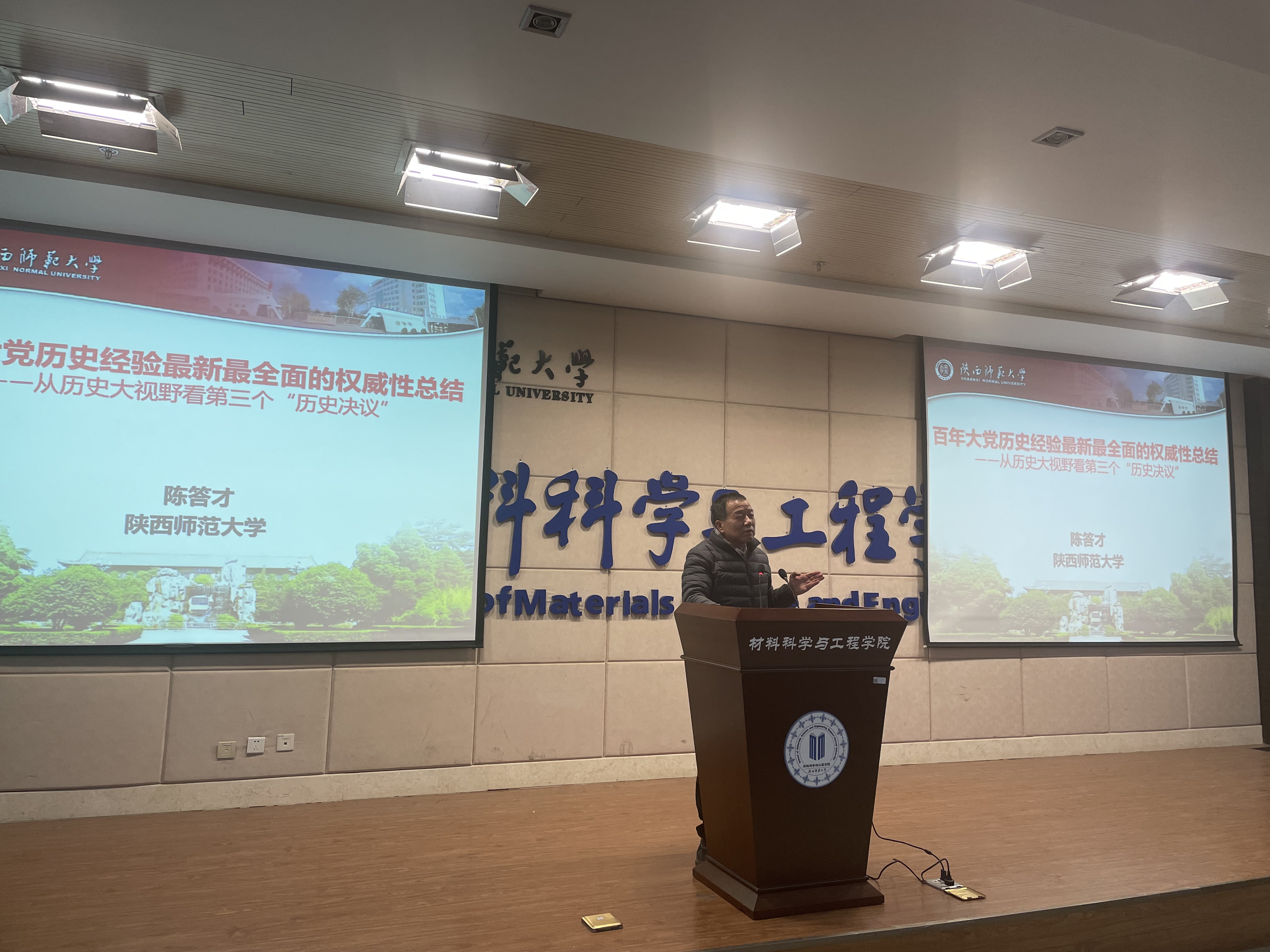 会上,陈教授以历史的重要性为切入点,讨论了党史学习的必要性和重要性。指出中国共产党是善于总结历史经验的党,并带领大家回顾了中共总结历史经验的权威文章并分析了其与党史发展历程的联系。