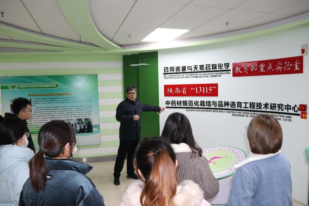 随后,大家来到西北濒危药材资源开发实验室参观学习。在智能温室、濒危药材繁育实验室和中药材展厅,郑鹏书记向大家展示了药用植物标本、中药材饮片和产品,并结合自身科研和扶贫经历,为师生讲解了各类濒危药用植物的相关知识及其背后的科研故事。