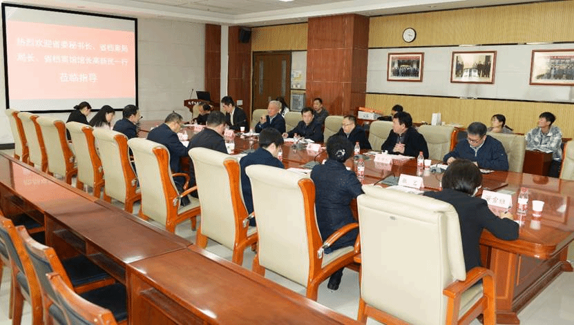 周正朝代表公司对高新民一行来校调研表示欢迎,对省档案局多年来给予公司档案保护研究工作的支持表示感谢。高新民指出,通过此次调研加强与公司在人才培养、科学研究、服务社会、文化传承创新、国际交流合作等方面深入开展合作。