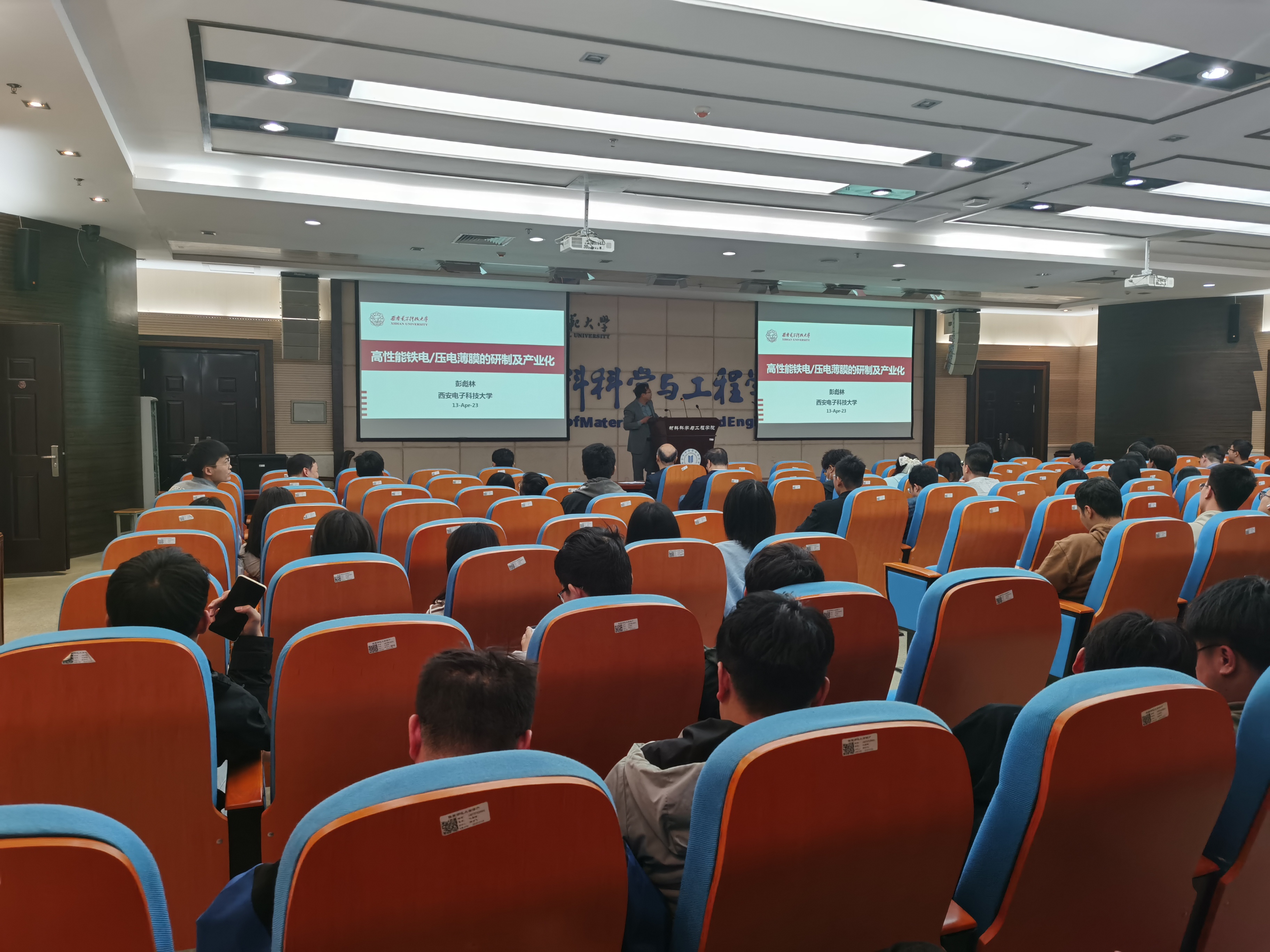 报告结束后,石锋教授与师生就晶格动力学设计材料微观结构与宏观性能等学术问题进行了深入交流讨论,并详细解答了师生提出的相关问题。西安电子科技大学彭彪林教授对“高性能铁电/压电薄膜的研制及产业化”进行了介绍,并就其所在团队成果转化合作、教师招聘、研究生招生等方面进行了宣介。