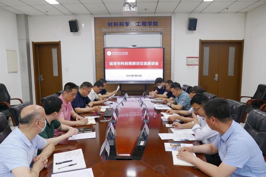 曾京辉对公司的基本情况以及与延安当地产业发展紧密结合的相关科研团队情况进行了汇报。柳江川副局长从科技人才队伍建设、科技成果转化、产学研合作、科技型企业的创办等方面对此次座谈的意向进行了详细介绍。屈新运从科研平台、人才队伍、科技成果等方面对公司科研工作整体情况进行了介绍, 提出了校地合作建议事项。公司教师晁小练、邓字巍、张崇分别就各自团队与延安科技局在新能源、文化遗产保护等领域紧密结合的科研成果做了重点推介。随后,与会人员围绕科技创新政策、优秀科技成果的培育、高层次创新创业人才引进、秦创原(延安)平台建设等方面进行了交流座谈。