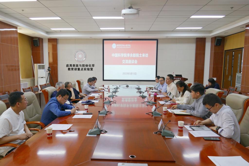 为全力推进理工融合团队建设,5月15日,中国科公司院士李永舫研究员受邀来访公司并开展研讨交流。公司党委常委、副董事长杨祖培教授,人才工作处处长张卫兵,科学技术处副处长曹晓仪,公司领导班子、教师代表参加了会议。会议由经理曾京辉主持。