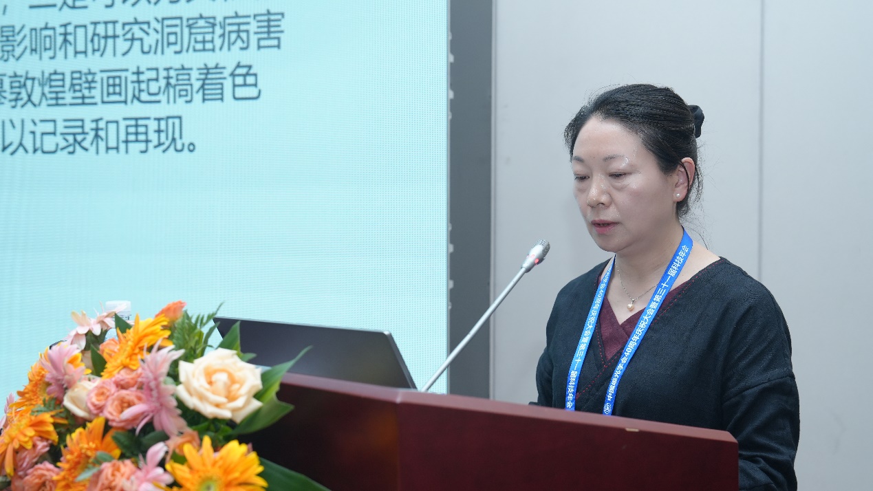 敦煌研究院张建荣老师做了“敦煌石窟影像档案的发展历程——传统影像时代”的主题报告,介绍了敦煌石窟影像的发展历程,以及敦煌石窟影像档案的种类、管理方法和石窟影像档案的价值。展示出莫高人“坚守大漠、甘于奉献、勇于担当、开拓进取”的莫高精神。