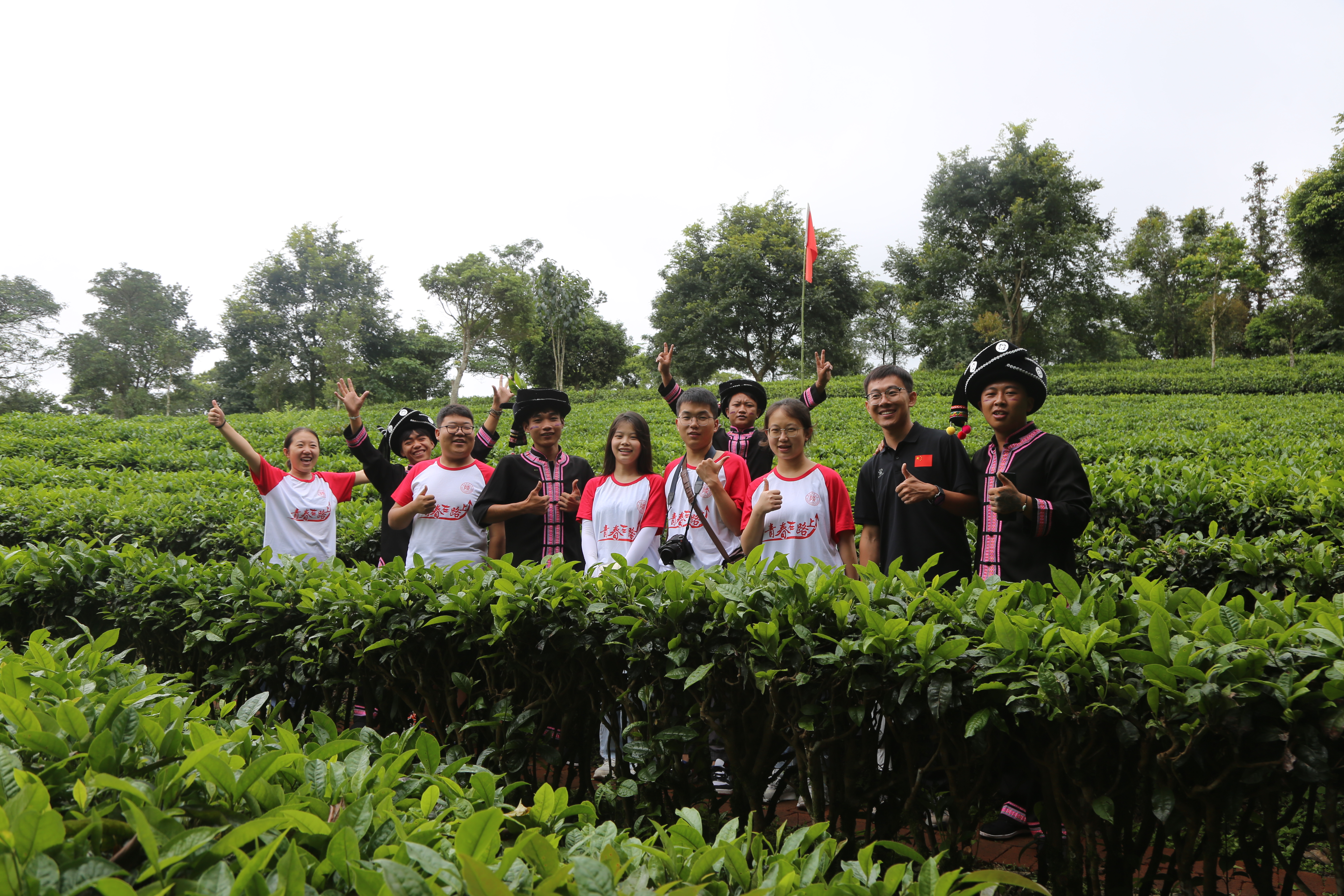 实践团一行赴中华普洱茶博览苑调研,跟随工作人员参观了傣族、彝族等民族建筑,感受了丰富多彩的民族文化。观看了少数民族歌舞表演,并且和佤族、拉祜族等少数民族的人民们一起互动交流。随后同学们来到了采茶区,近距离观看了陈年老茶树,并体验了采摘茶叶的过程,寓教于乐,感受了茶文化的魅力。