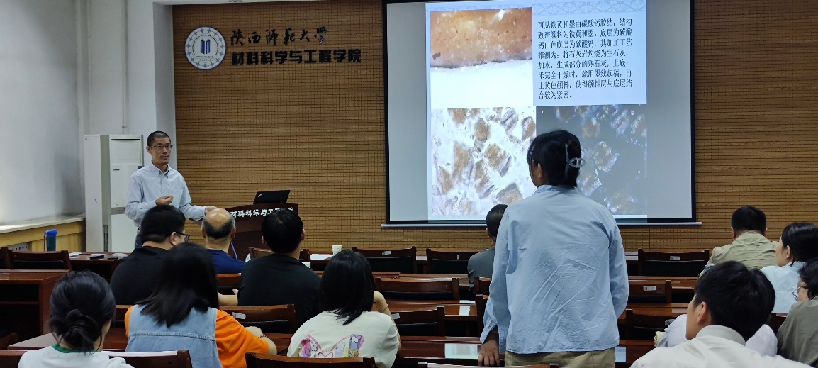 2023年9月21日上午,秦始皇帝陵博物院研究馆员,文物保护部主任,国际文物保护修复研究所特聘研究员,陶制彩绘文物保护国家文物局重点科研基地副主任夏寅受邀来公司作了题为“遗彩寻微——显微镜分析方法在彩绘文物研究中的应用”的学术报告。历史文化遗产保护教育部工程研究中心晁小练副主任、金普军教授、周亚军副教授、沈淑坤副教授等教师及相关专业研究生参加了报告会,报告会由邢惠萍副教授主持,