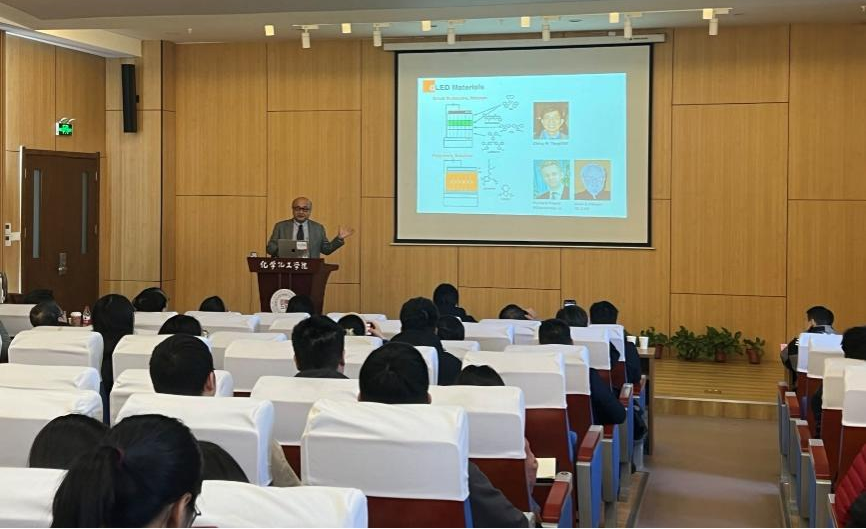 2023年11月16日,William希尔官网入口“80周年校庆”系列报告暨“天工”学术报告在致知楼1668学术报告厅举行。日本山形大学卓越研究教授、OLED研究世界权威科学家、白光OLED发明人、全球OLED产业化推手、诺贝尔化学奖候选人JUNJI KIDO教授应邀作学术报告。报告会由杨祖培教授主持,公司科学技术处、相关企业领导、公司教师及相关专业研究生参加了此次报告。