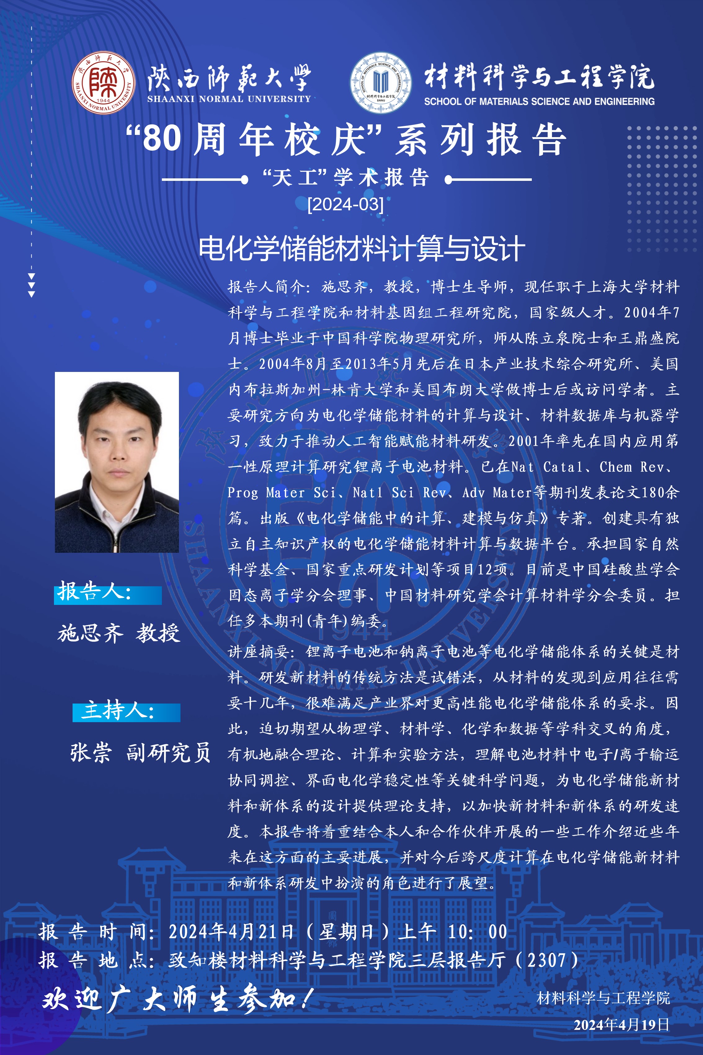 【学术报告】4月21日学术报告预告