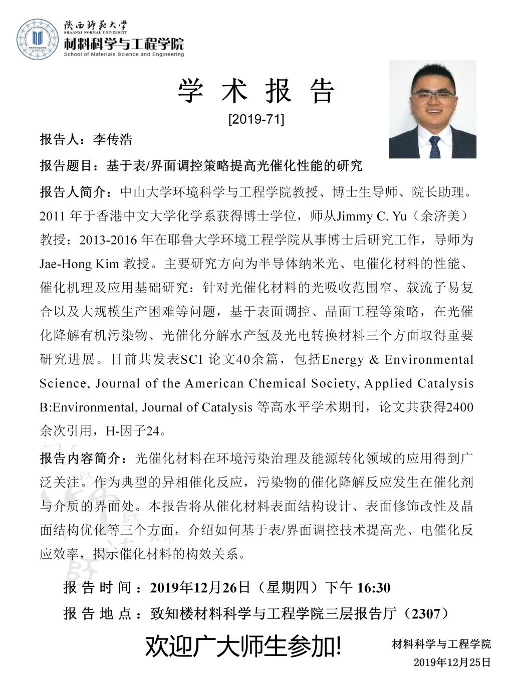 【学术报告】12月26日学术报告预告