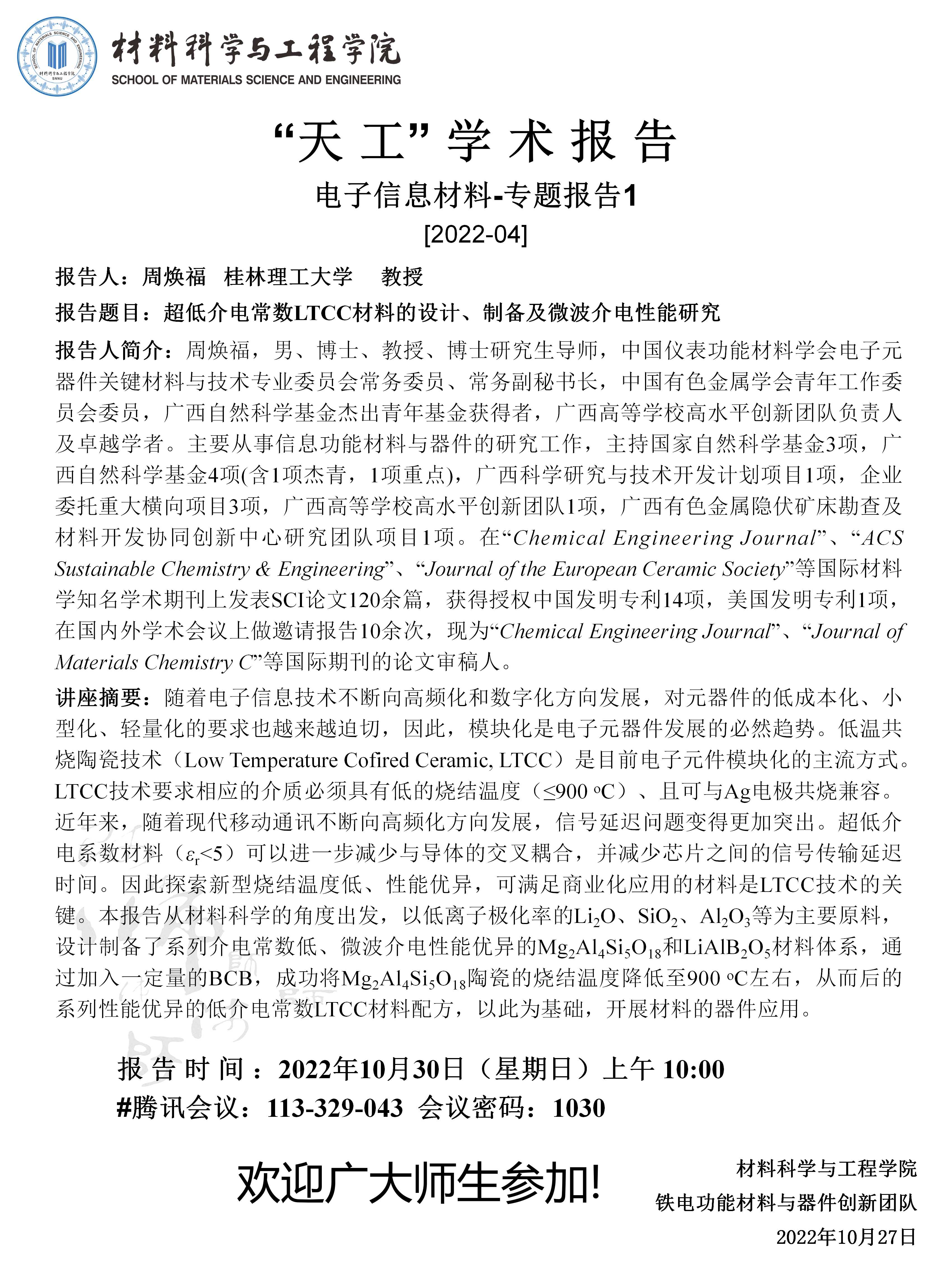 【学术报告】10月30日学术报告预告