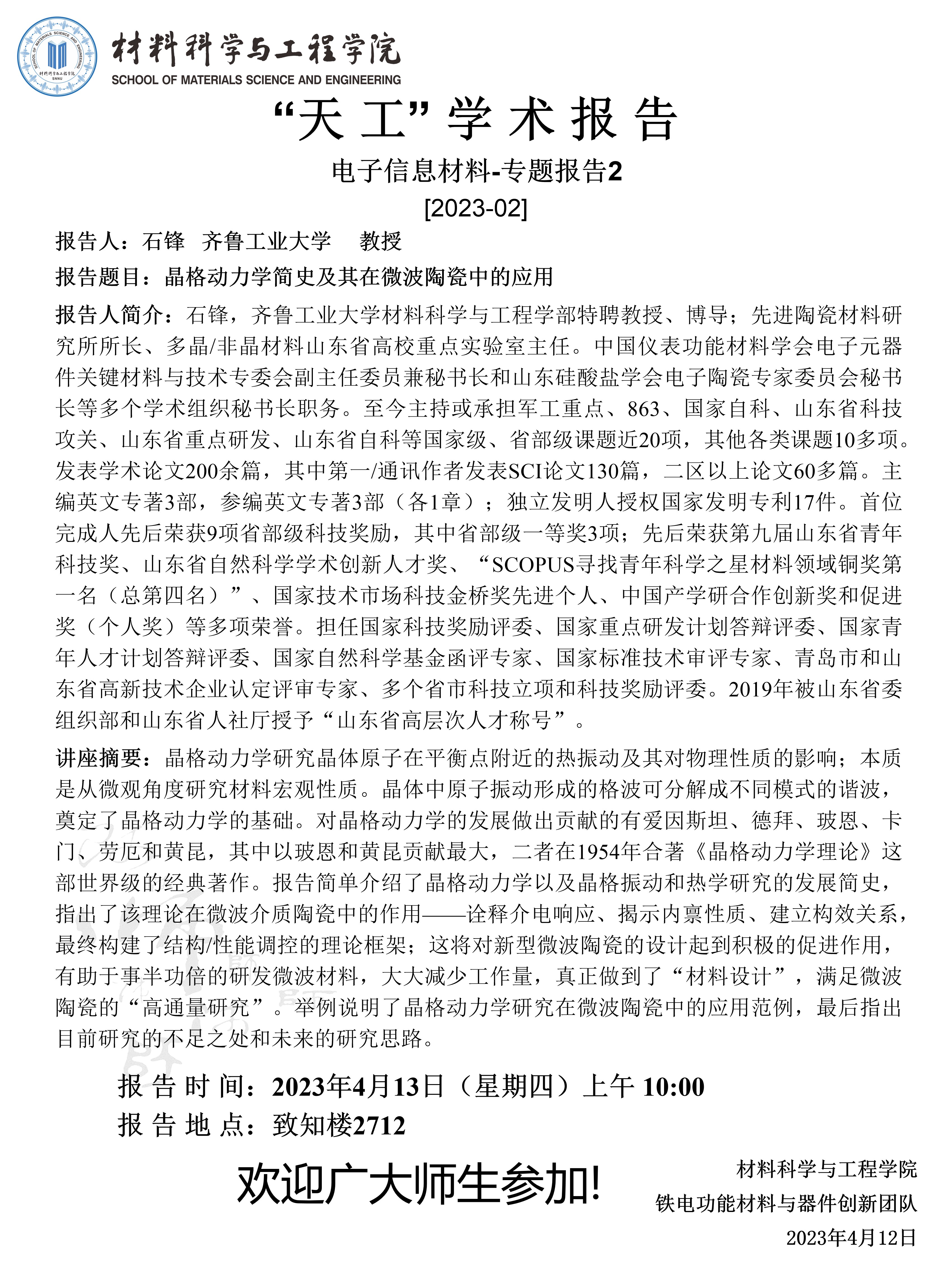 【学术报告】4月13日学术报告预告