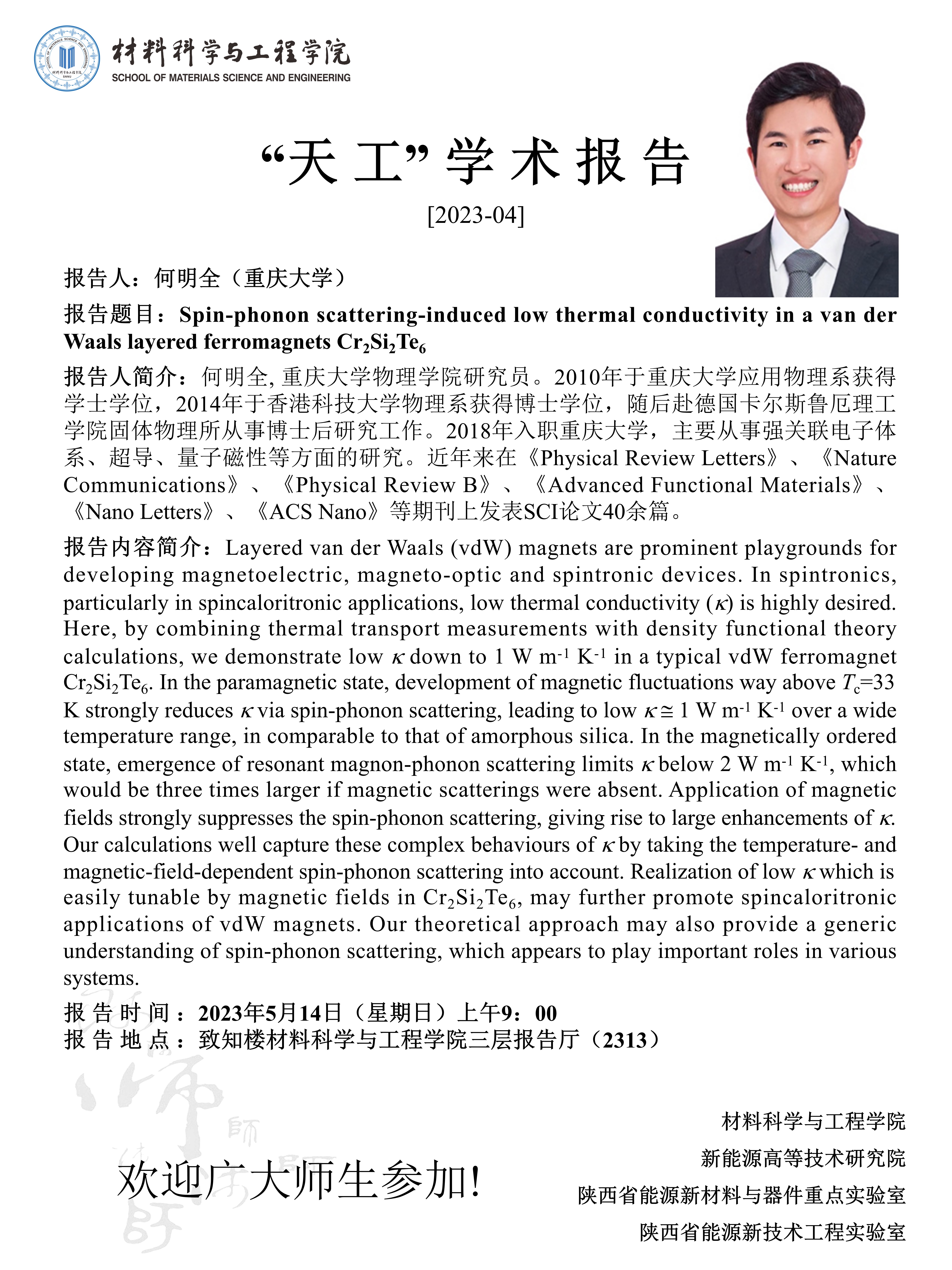 【学术报告】5月14日学术报告预告