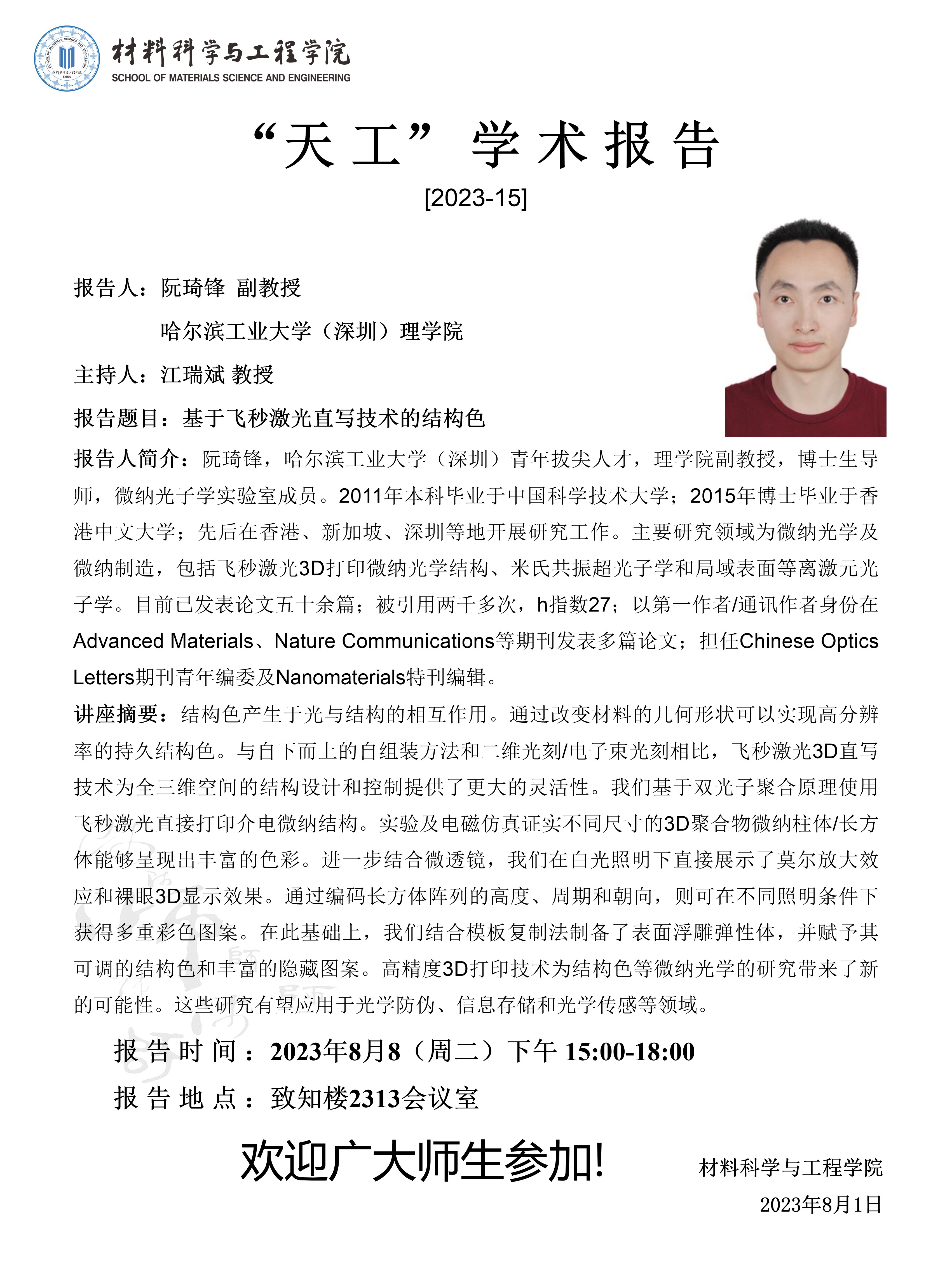 【学术报告】8月8日学术报告预告(一)